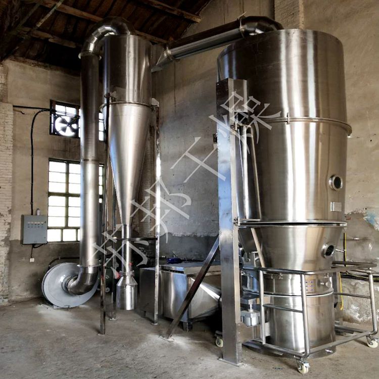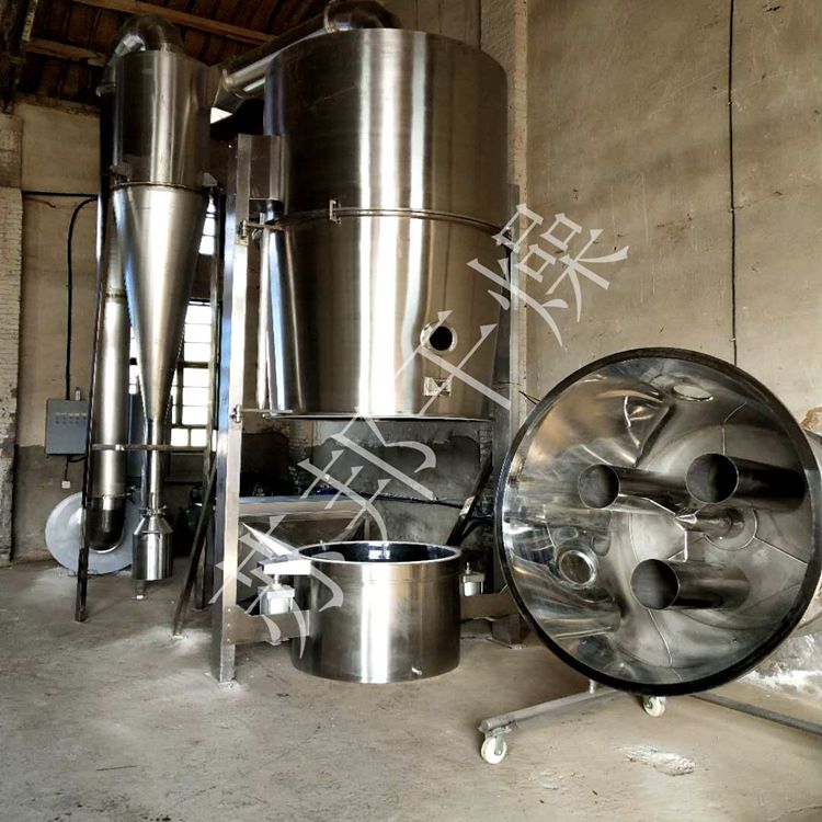 本機由空氣除濕裝置(可選)、空氣過濾器,空氣加熱器,干燥、制粒、包衣床,分離室,過濾室,排風管、引風機、消音器、控制柜等組成。