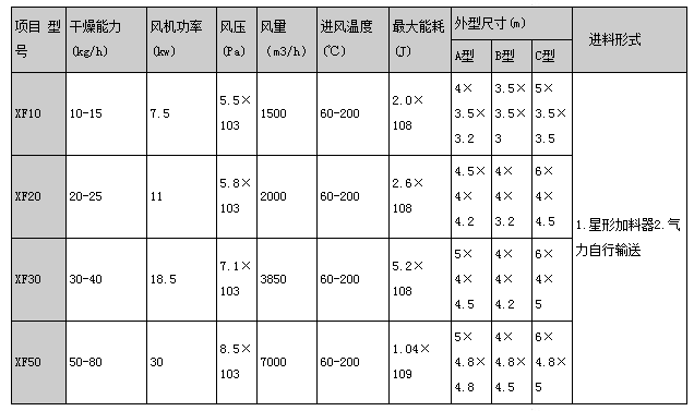 醫(yī)藥藥品、化工原料、食品、糧食加工、飼料的干燥作業(yè)。如;原料藥、壓片顆粒、中藥沖劑、保健食品、飲料沖劑、玉米胚芽、飼料、塑料樹脂、檸檬酸和其它粉粒狀物料的干燥除濕。適用物料粒徑一般為0.1-6mm,^佳粒徑為0.5-3mm。